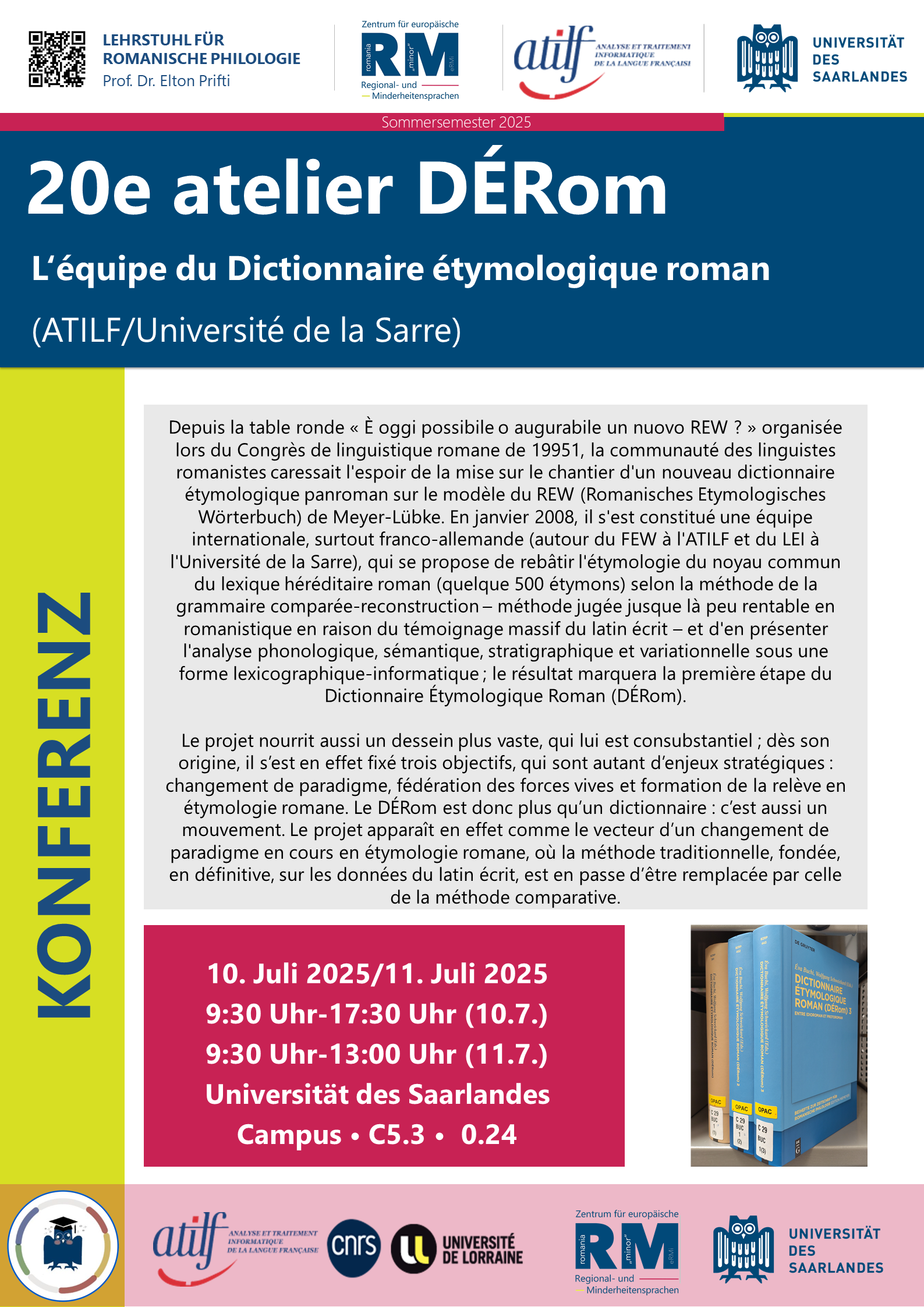 10 et 11 juillet 2025 : 20ᵉ Atelier DÉRom, à Sarrebruck (Université de la Sarre).