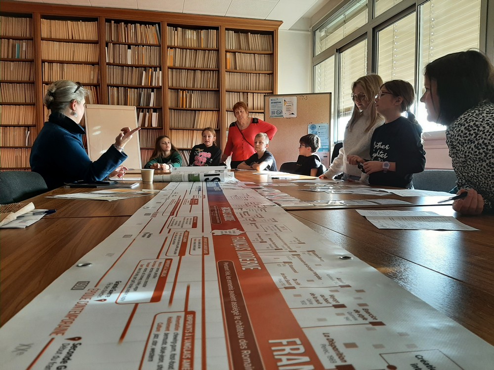 Les élèves accompagnés de leur professeure des écoles Aurélie Houard et de parents-accompagnateurs avec la présence de Philippe Couloignier, Président du district sud de Meurthe-et-Moselle du Crédit Mutuel, étaient répartis en 3 groupes et ont découvert à tour de rôle « le monde des mots » dans 3 ateliers.